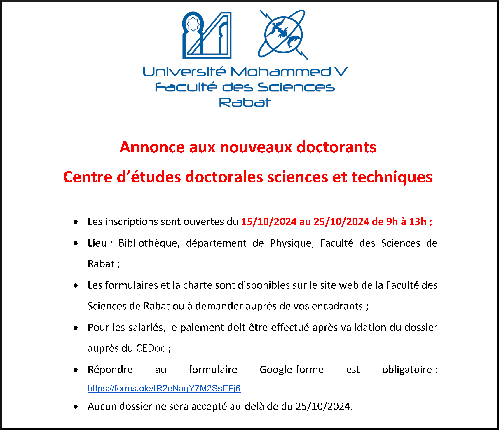 La Faculté des Sciences de Rabat annonce l’ouverture des candidatures pour occuper les postes de chefs de services (Dossier de candidature).