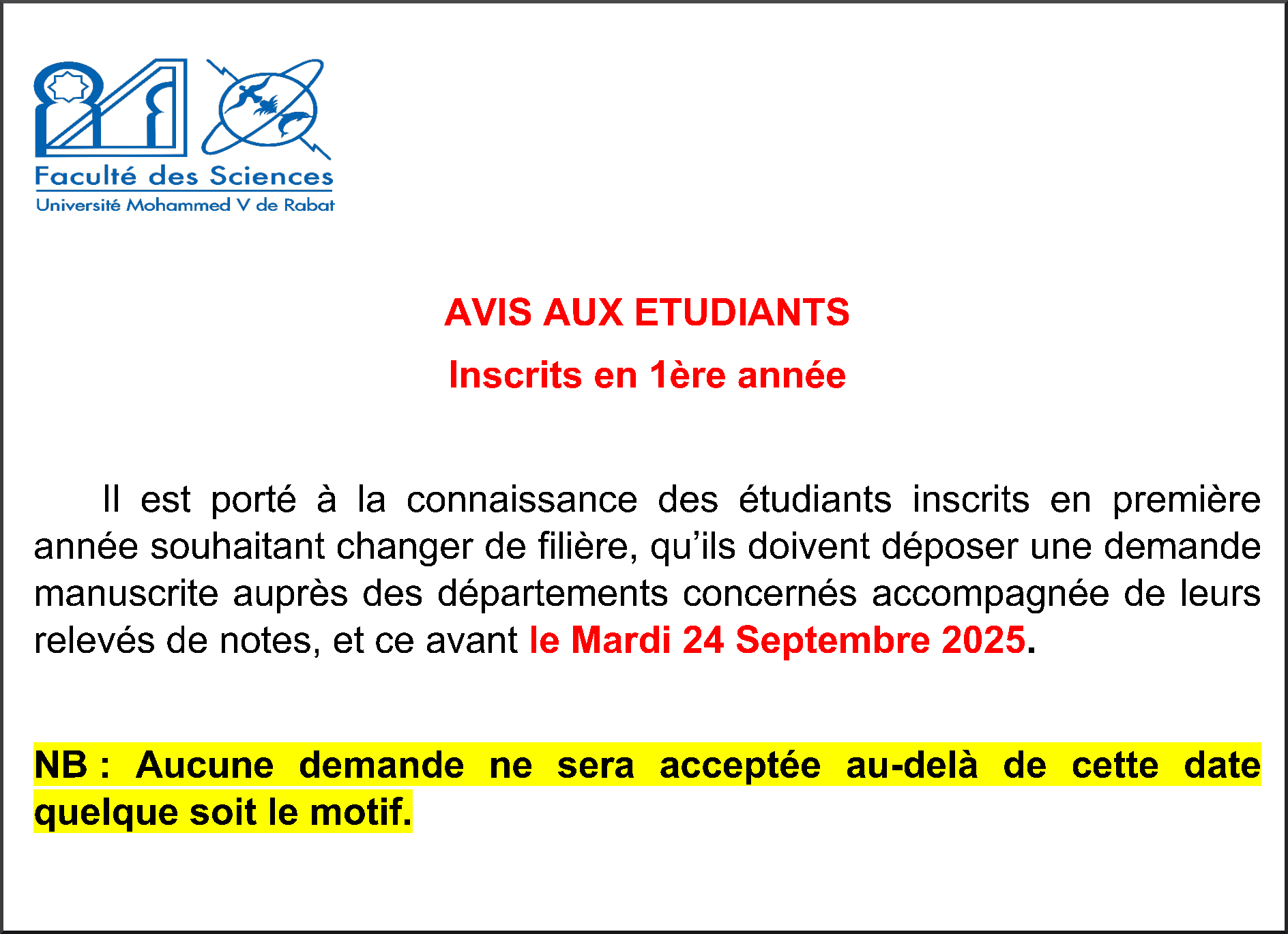 Il est porté à la connaissance des étudiants inscrits en première année souhaitant changer de filière.....